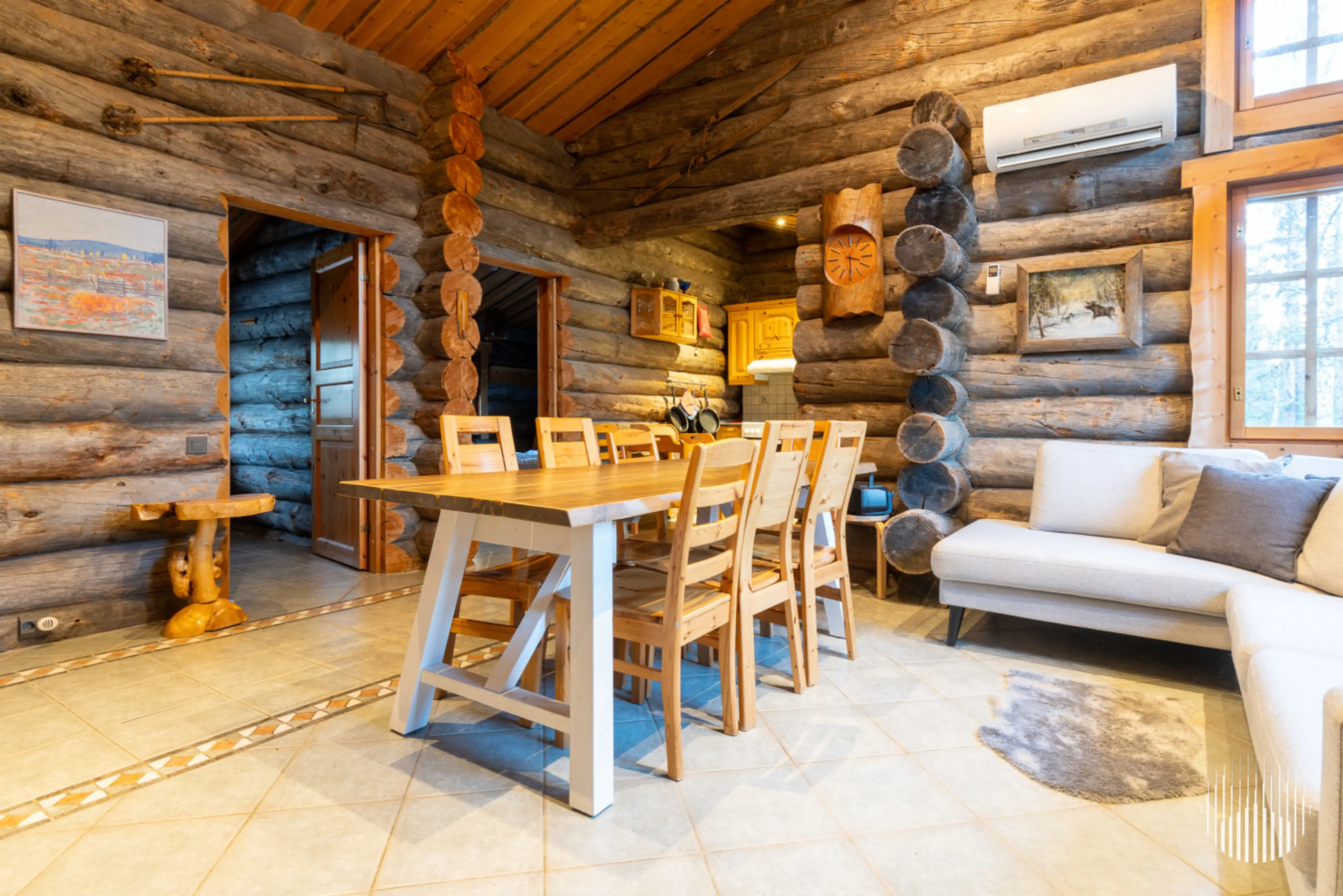 Surrounded by the peaceful atmosphere of Ylläsjärvi, Klasun Maja B offers a genuine Lapland experience in a charming semi-detached log apartment for 4+4 people. The warm wooden interior, private sauna and fireplace create the perfect setting for a relaxing holiday. The apartment features two bedroo...