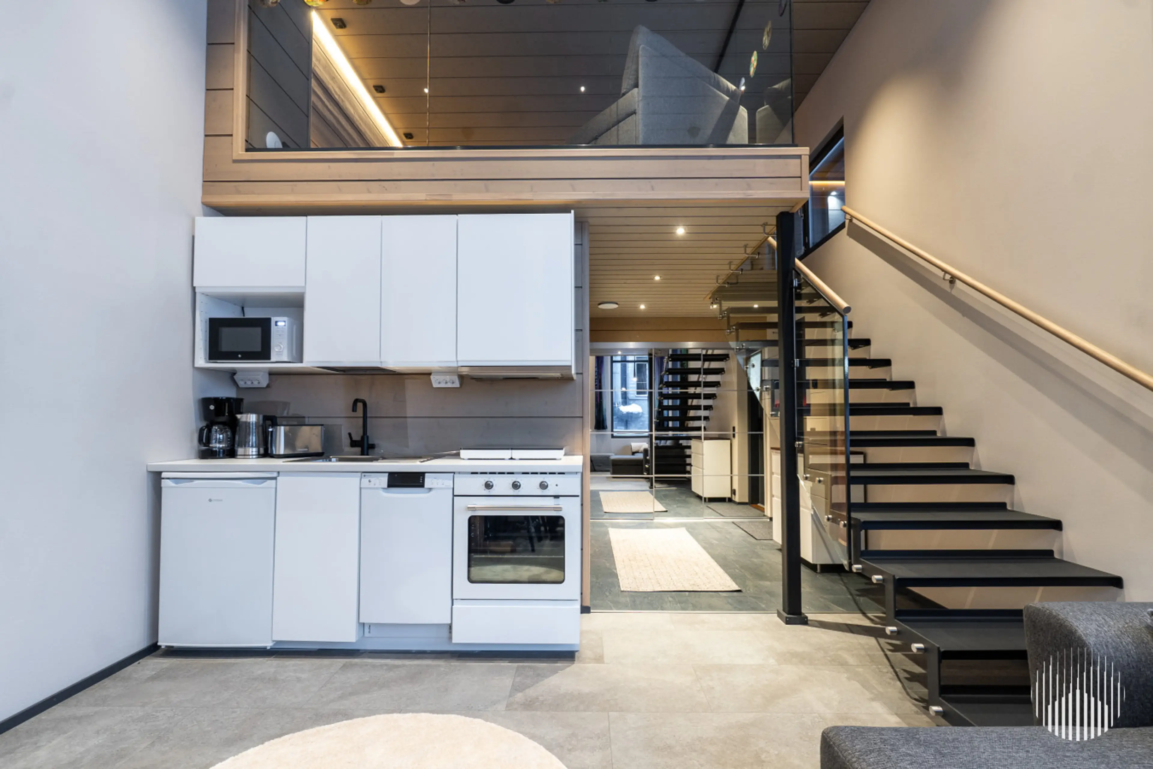 Huoneistossa oli siistit pinnat ja riittävästi tilaa kahdelle henkilölle. Huoneisto oli moderni ja viihtyisä.