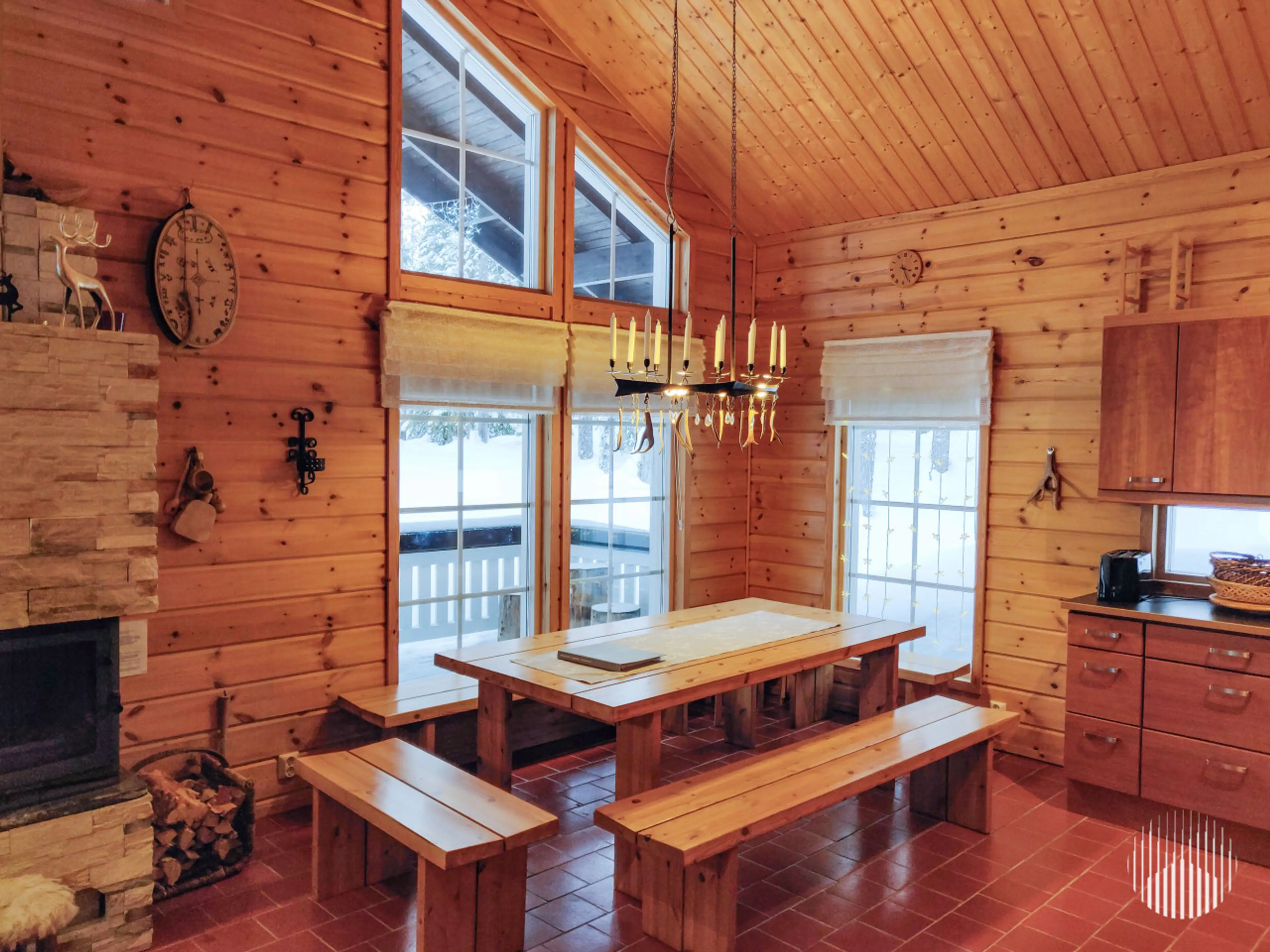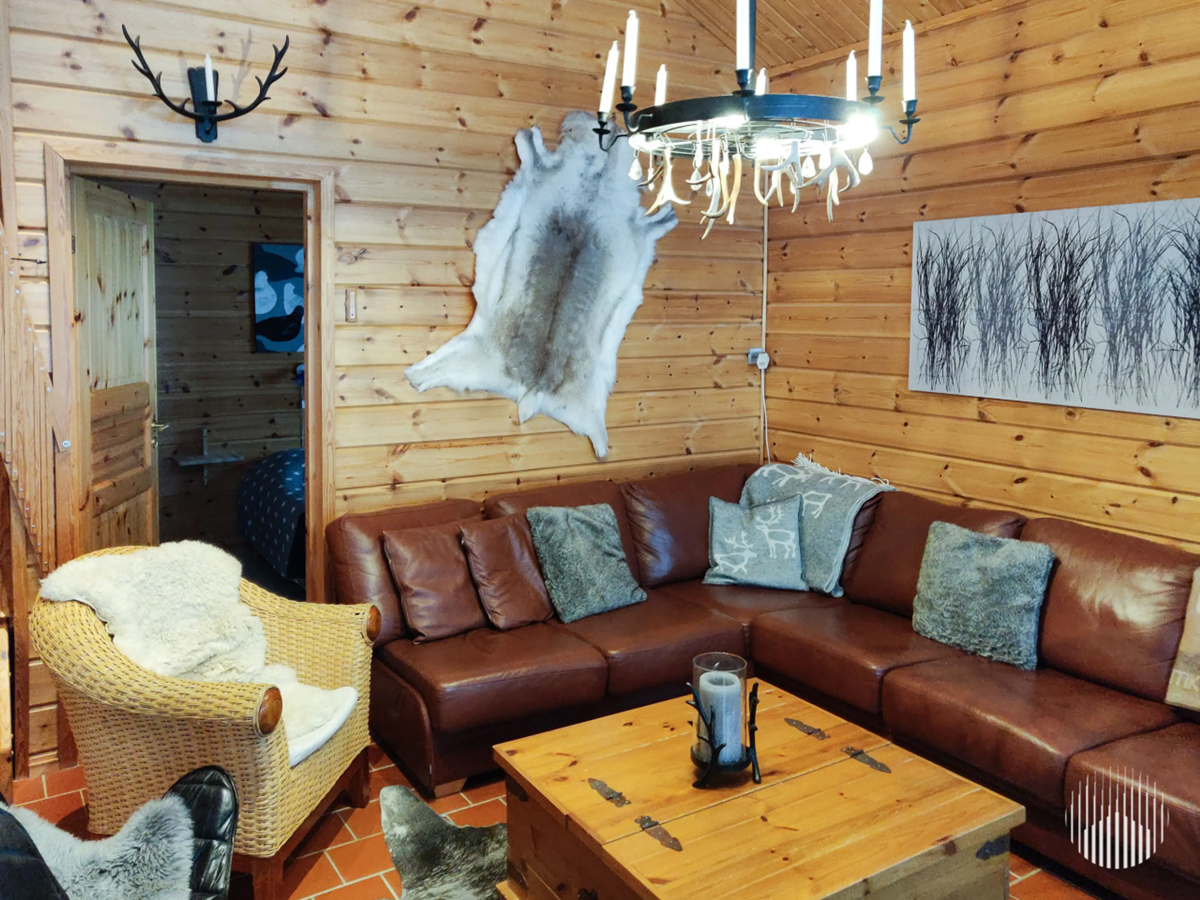 This spacious log villa in the peaceful Luppo area of Ylläsjärvi offers a cozy and authentic Lapland holiday experience. Built in 2006, the 140 m² villa comfortably accommodates up to 12 guests and features three bedrooms, an open-plan living and kitchen area, a loft, two bathrooms, and a private sa...