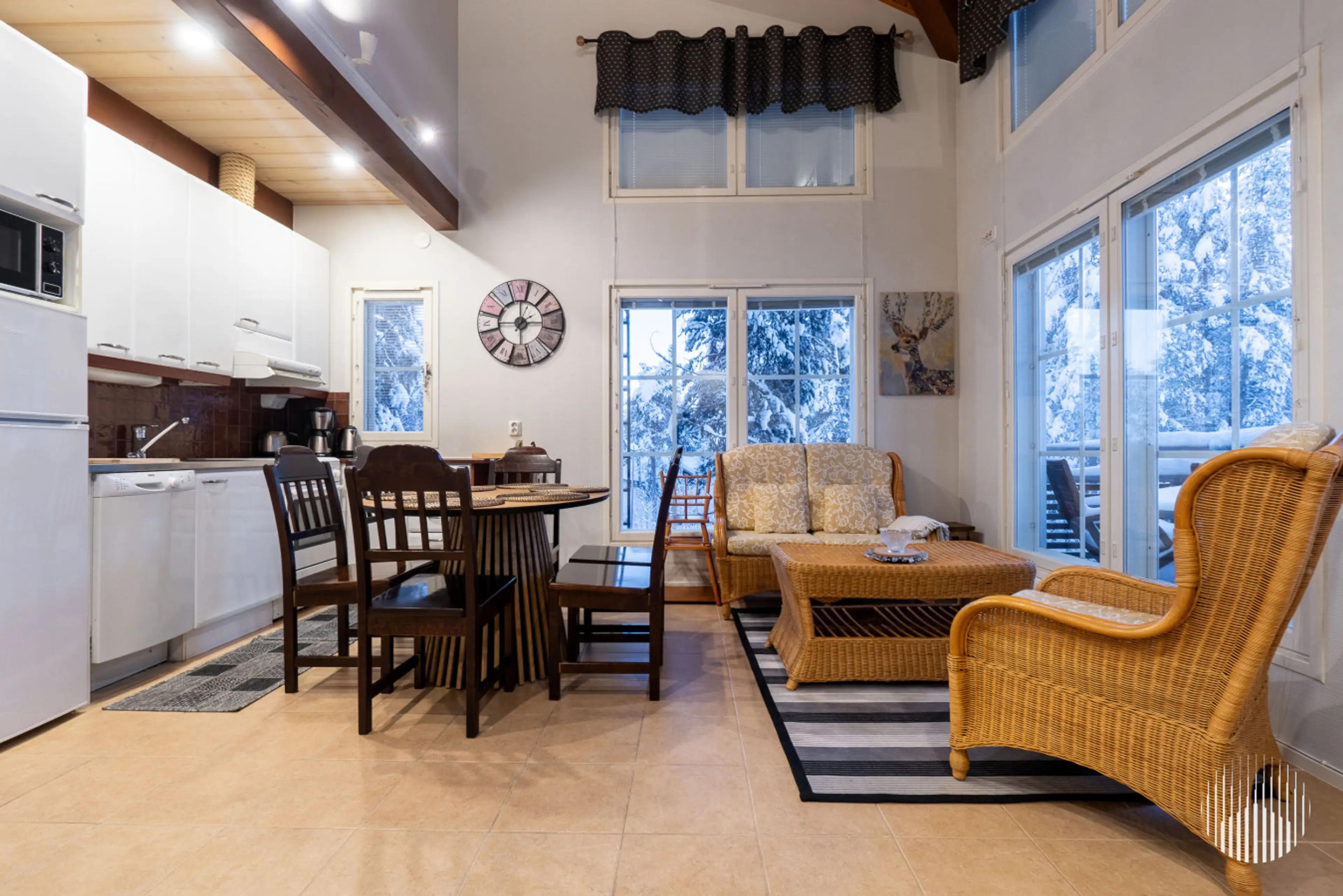 This bright holiday apartment in a great location offers a comfortable and relaxed base for your Lapland getaway near Levi. Surrounded by nature yet close to activities, it’s ideal for both active holidays and peaceful escapes. Cross-country ski trails run right next to the building, and the neares...